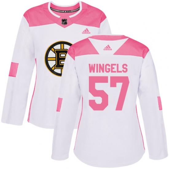 Women's Adidas Boston Bruins #57 Tommy Wingels Authentic White Pink Fashion NHL Jersey