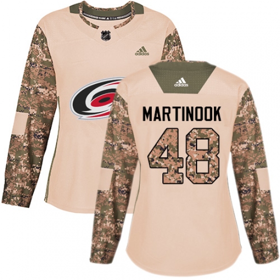 >Women's Adidas Carolina Hurricanes #48 Jordan Martinook Authentic Camo Veterans Day Practice NHL Jersey