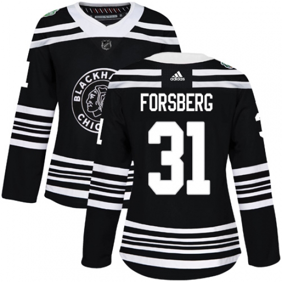Women's Chicago Blackhawks #31 Anton Forsberg Black 2019 Winter Classic Fanatics Branded Breakaway NHL Jersey