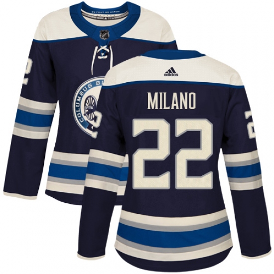 Women's Adidas Columbus Blue Jackets #22 Sonny Milano Authentic Navy Blue Alternate NHL Jersey
