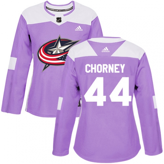 >Women's Adidas Columbus Blue Jackets #44 Taylor Chorney Authentic Purple Fights Cancer Practice NHL Jersey