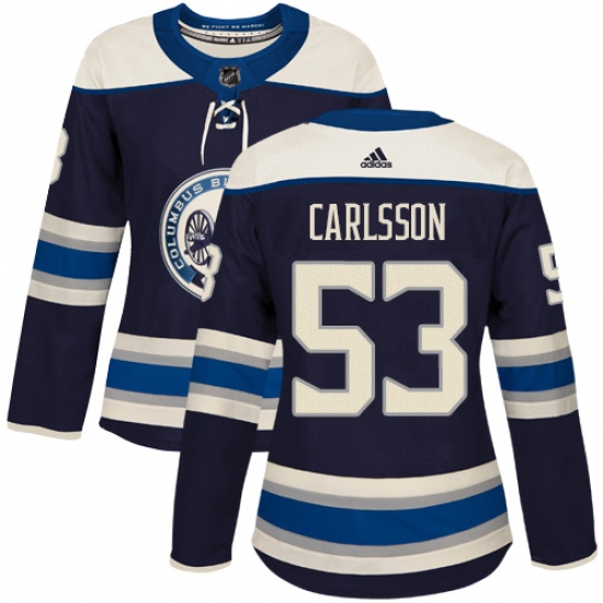 Women's Adidas Columbus Blue Jackets #53 Gabriel Carlsson Authentic Navy Blue Alternate NHL Jersey