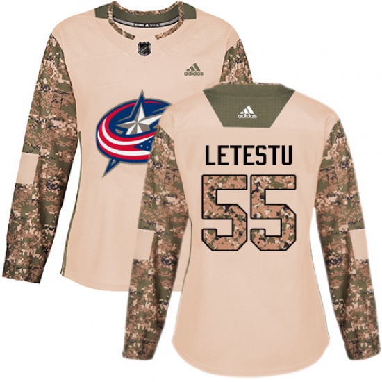 >Women's Adidas Columbus Blue Jackets #55 Mark Letestu Authentic Camo Veterans Day Practice NHL Jersey