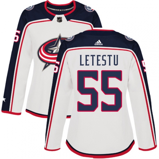 Women's Adidas Columbus Blue Jackets #55 Mark Letestu Authentic White Away NHL Jersey