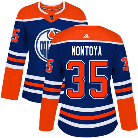 >Women's Adidas Edmonton Oilers #35 Al Montoya Authentic Royal Blue Alternate NHL Jersey