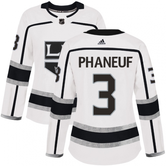 Women's Adidas Los Angeles Kings #3 Dion Phaneuf Authentic White Away NHL Jersey