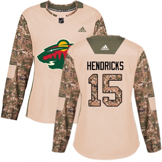 >Women's Adidas Minnesota Wild #15 Matt Hendricks Authentic Camo Veterans Day Practice NHL Jersey