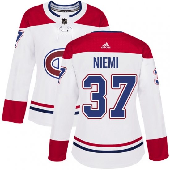 Women's Adidas Montreal Canadiens #37 Antti Niemi Authentic White Away NHL Jersey