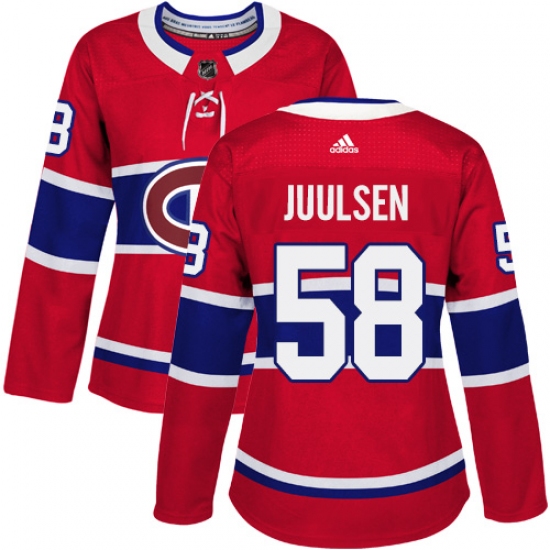 Home>NHL>Montreal Canadiens>Noah Juulsen>Women's Adidas Montreal Canadiens #58 Noah Juulsen Authentic Red Home NHL Jersey