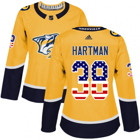 Women's Adidas Nashville Predators #38 Ryan Hartman Authentic Gold USA Flag Fashion NHL Jersey