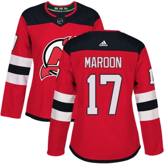 Women's Adidas New Jersey Devils #17 Patrick Maroon Authentic Red Home NHL Jersey