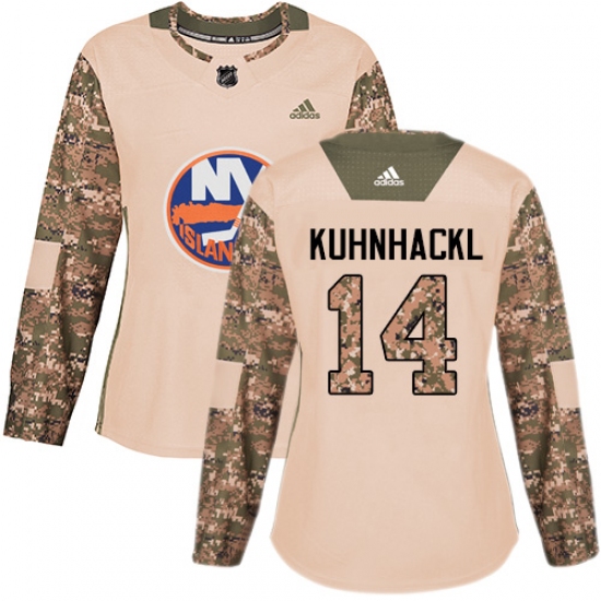 >Women's Adidas New York Islanders #14 Tom Kuhnhackl Authentic Camo Veterans Day Practice NHL Jersey
