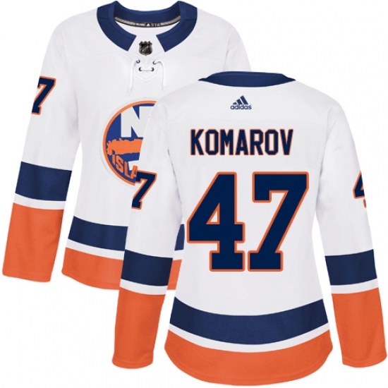 >Women's Adidas New York Islanders #47 Leo Komarov Authentic White Away NHL Jersey