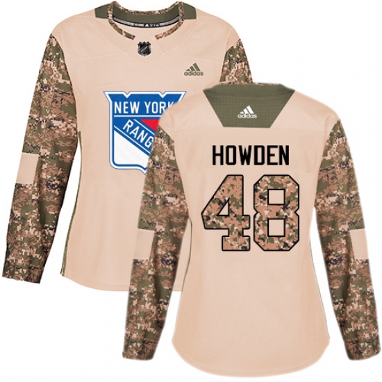 >Women's Adidas New York Rangers #48 Brett Howden Authentic Camo Veterans Day Practice NHL Jersey