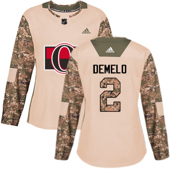 Women's Adidas Ottawa Senators #2 Dylan DeMelo Authentic Camo Veterans Day Practice NHL Jersey