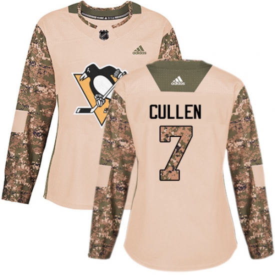 >Women's Adidas Pittsburgh Penguins #7 Matt Cullen Authentic Camo Veterans Day Practice NHL Jersey