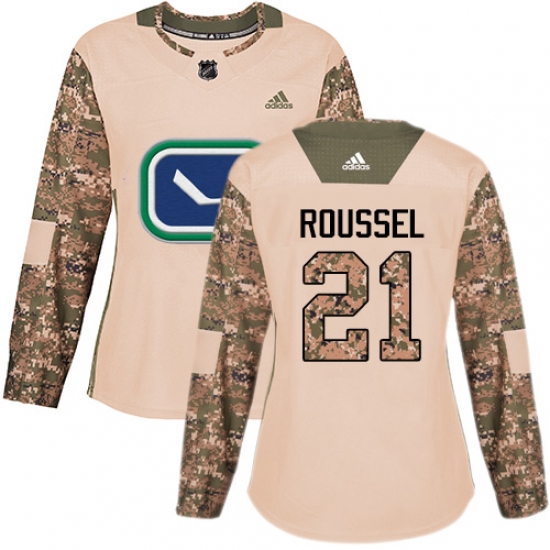 >Women's Adidas Vancouver Canucks #21 Antoine Roussel Authentic Camo Veterans Day Practice NHL Jersey