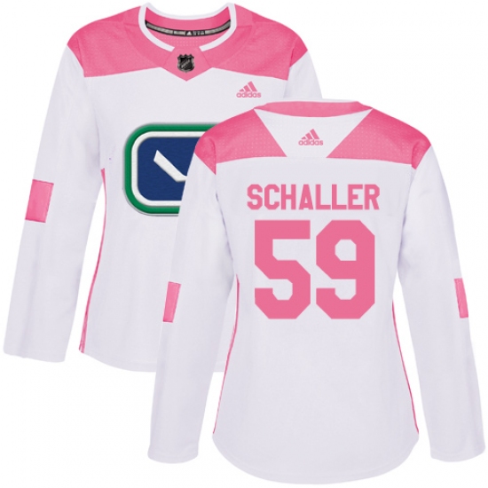 >Women's Adidas Vancouver Canucks #59 Tim Schaller Authentic White Pink Fashion NHL Jersey