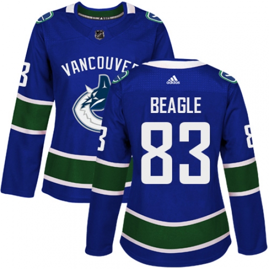 >Women's Adidas Vancouver Canucks #83 Jay Beagle Authentic Blue Home NHL Jersey