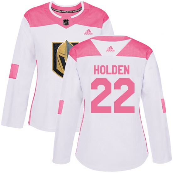 Women's Adidas Vegas Golden Knights #22 Nick Holden Authentic White Pink Fashion NHL Jersey