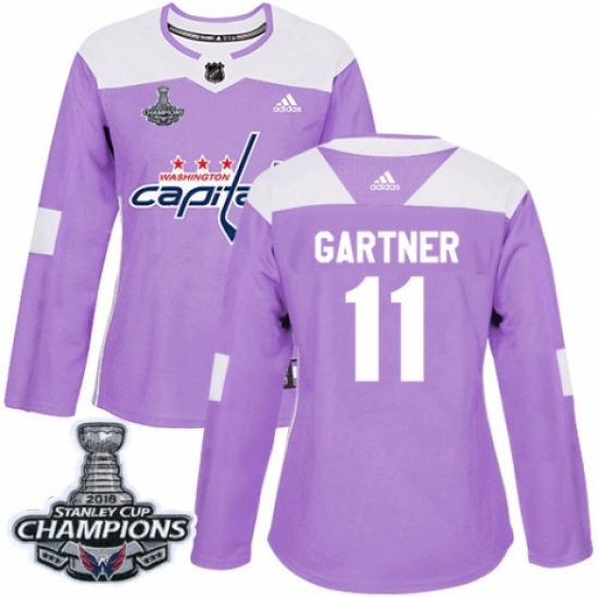 >Women's Adidas Washington Capitals #11 Mike Gartner Authentic Purple Fights Cancer Practice 2018 Stanley Cup Final Champions NHL Jersey