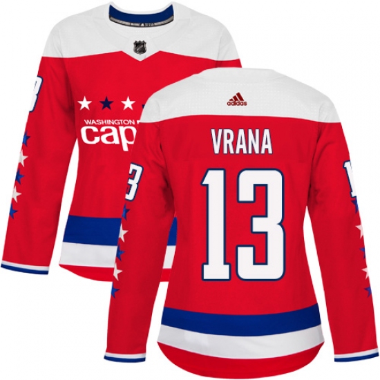 Women's Adidas Washington Capitals #13 Jakub Vrana Authentic Red Alternate NHL Jersey