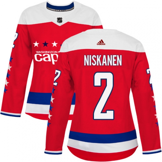 >Women's Adidas Washington Capitals #2 Matt Niskanen Authentic Red Alternate NHL Jersey
