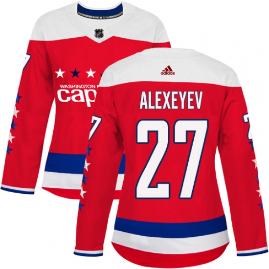 Home>NHL>Washington Capitals>Alexander Alexeyev >Women's Adidas Washington Capitals #27 Alexander Alexeyev Authentic Red Alternate NHL Jersey