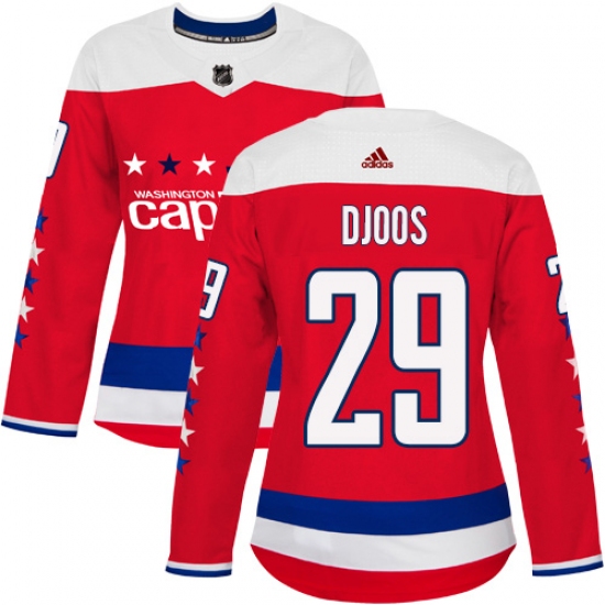 Women's Adidas Washington Capitals #29 Christian Djoos Authentic Red Alternate NHL Jersey