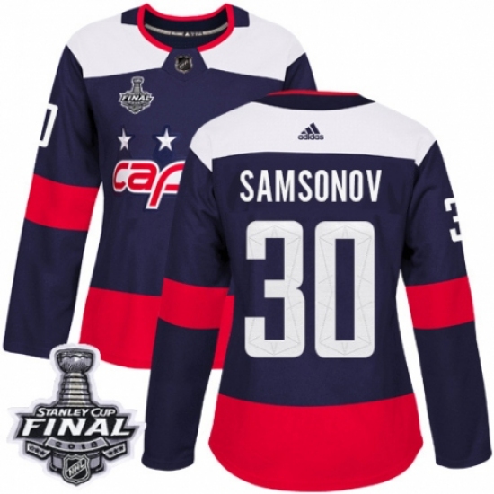 Women's Adidas Washington Capitals #30 Ilya Samsonov Authentic Navy Blue 2018 Stadium Series 2018 Stanley Cup Final NHL Jersey