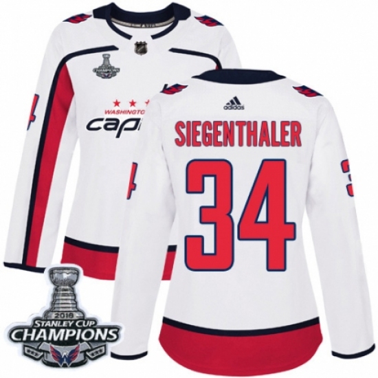 Women's Adidas Washington Capitals #34 Jonas Siegenthaler Authentic White Away 2018 Stanley Cup Final Champions NHL Jersey