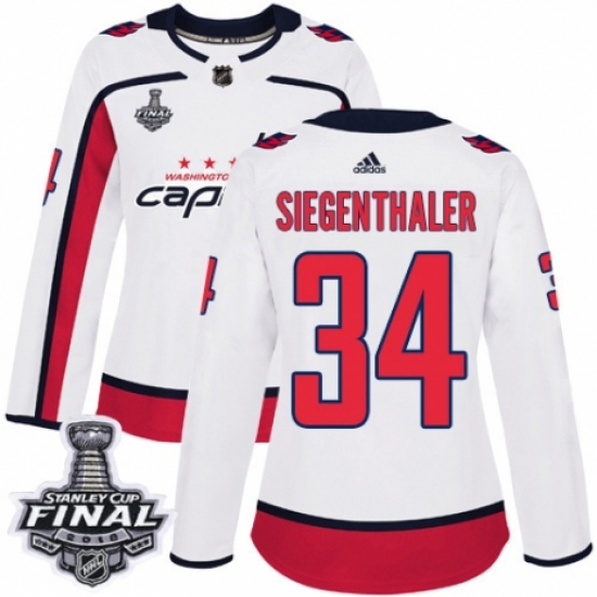 Women's Adidas Washington Capitals #34 Jonas Siegenthaler Authentic White Away 2018 Stanley Cup Final NHL Jersey