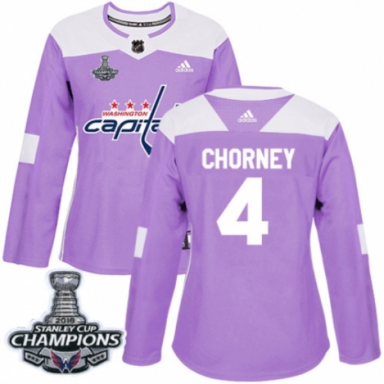 >Women's Adidas Washington Capitals #4 Taylor Chorney Authentic Purple Fights Cancer Practice 2018 Stanley Cup Final Champions NHL Jersey