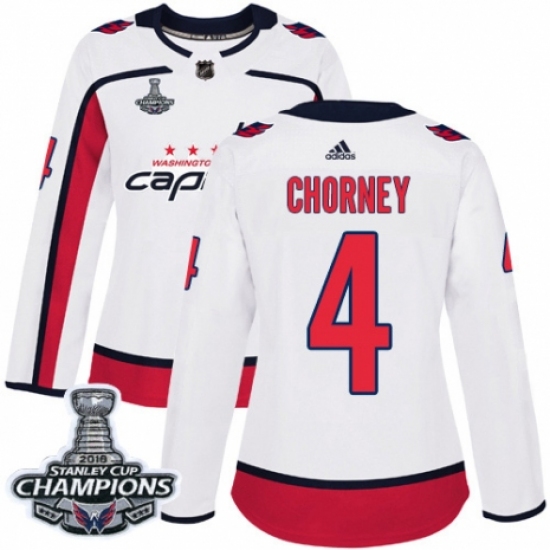 Women's Adidas Washington Capitals #4 Taylor Chorney Authentic White Away 2018 Stanley Cup Final Champions NHL Jersey