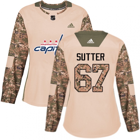 >Women's Adidas Washington Capitals #67 Riley Sutter Authentic Camo Veterans Day Practice NHL Jersey