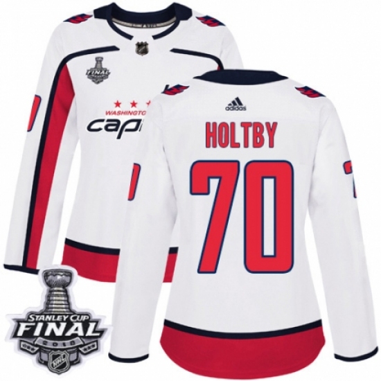 Women's Adidas Washington Capitals #70 Braden Holtby Authentic White Away 2018 Stanley Cup Final NHL Jersey