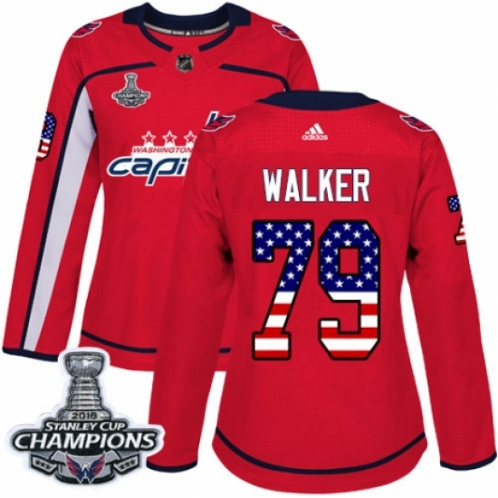 Women's Adidas Washington Capitals #79 Nathan Walker Authentic Red USA Flag Fashion 2018 Stanley Cup Final Champions NHL Jersey