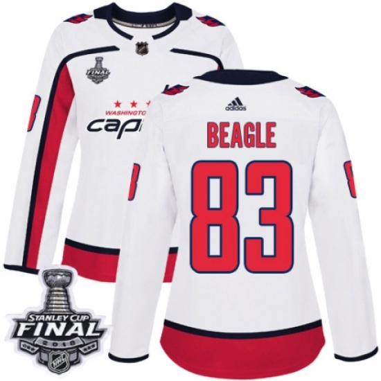 Women's Adidas Washington Capitals #83 Jay Beagle Authentic White Away 2018 Stanley Cup Final NHL Jersey