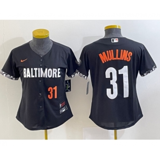 >Women's Baltimore Orioles #31 Cedric Mullins Number Black 2023 City Connect Cool Base Stitched Jersey 2
