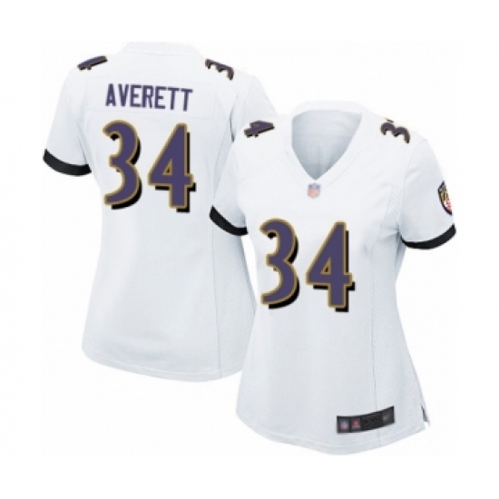>Women's Baltimore Ravens #34 Anthony Averett Game White Football Jersey