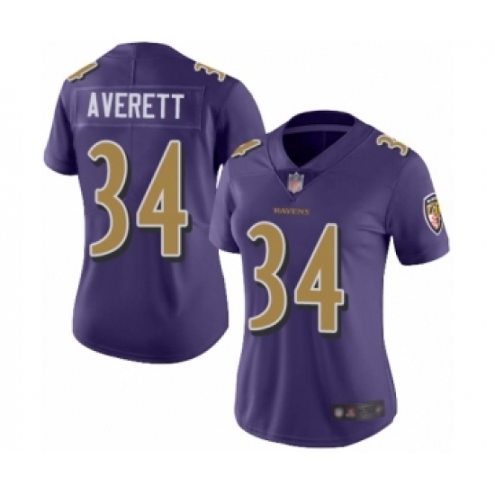 >Women's Baltimore Ravens #34 Anthony Averett Limited Purple Rush Vapor Untouchable Football Jersey