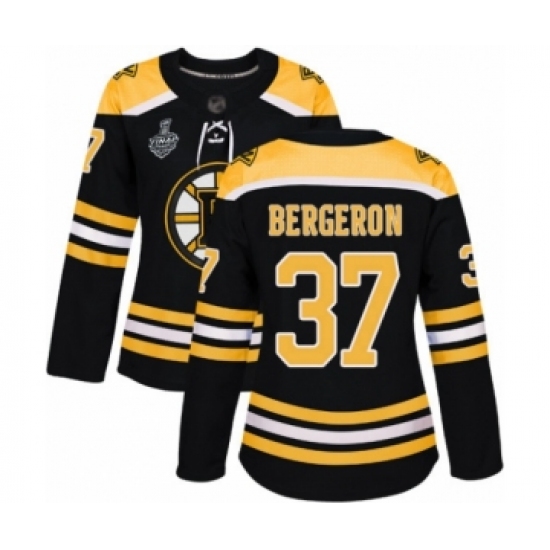 Women's Boston Bruins #37 Patrice Bergeron Authentic Black Home 2019 Stanley Cup Final Bound Hockey Jersey