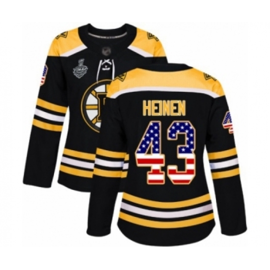 >Women's Boston Bruins #43 Danton Heinen Authentic Black USA Flag Fashion 2019 Stanley Cup Final Bound Hockey Jersey