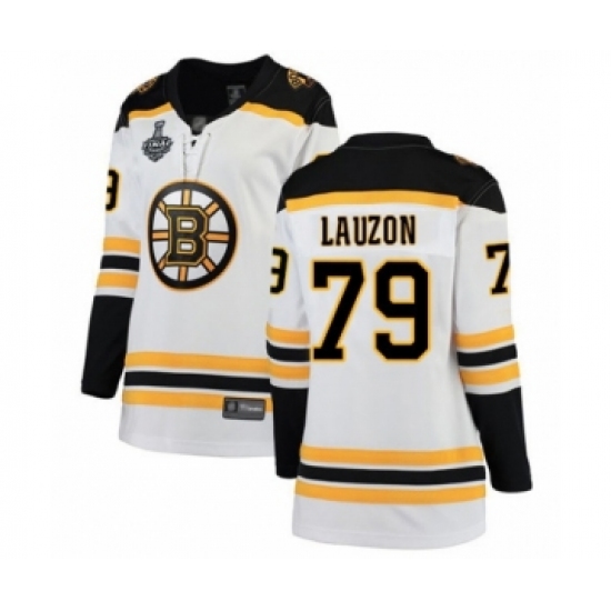 Women's Boston Bruins #79 Jeremy Lauzon Authentic White Away Fanatics Branded Breakaway 2019 Stanley Cup Final Bound Hockey Jersey