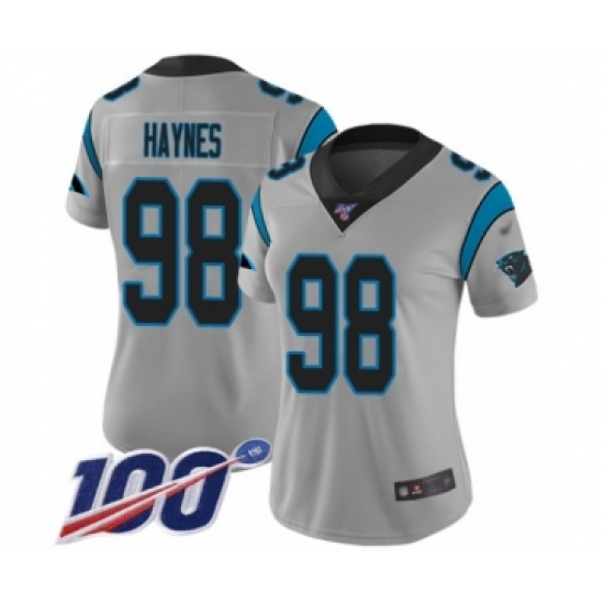 Women's Carolina Panthers #98 Marquis Haynes Silver Inverted Legend Limited 100th Season Football Jersey