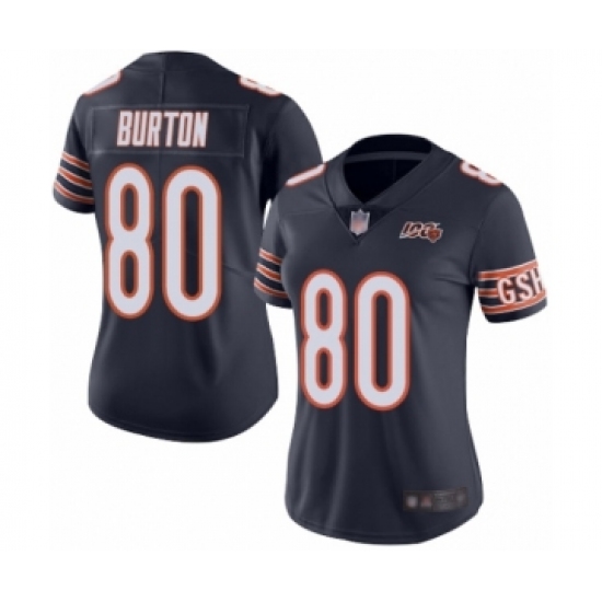 Women's Chicago Bears #80 Trey Burton Navy Blue Team Color 100th Season Limited Football Jersey