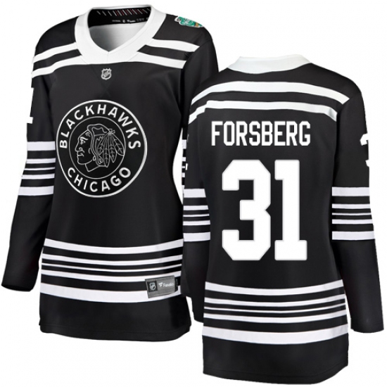 Women's Chicago Blackhawks #31 Anton Forsberg Black 2019 Winter Classic Fanatics Branded Breakaway NHL Jersey