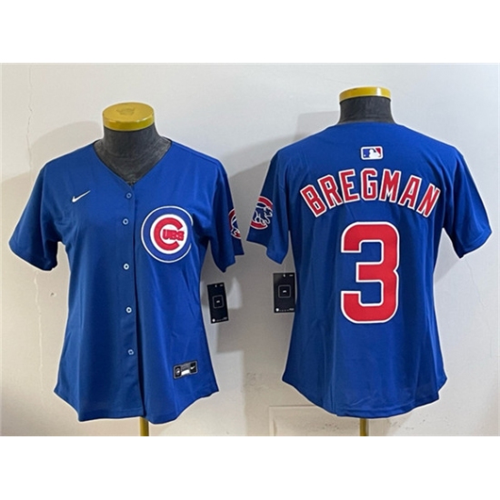 Women's Chicago Cubs #3 Alex Bregman Royal Vapor Limited Stitched Baseball Jersey(Run Small)