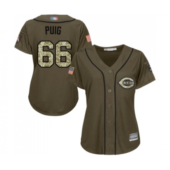 Women's Cincinnati Reds #66 Yasiel Puig Authentic Green Salute to Service Baseball Jersey