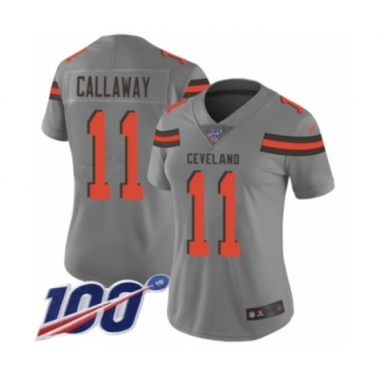 Women's Cleveland Browns #11 Antonio Callaway Limited Gray Inverted Legend 100th Season Football Jersey